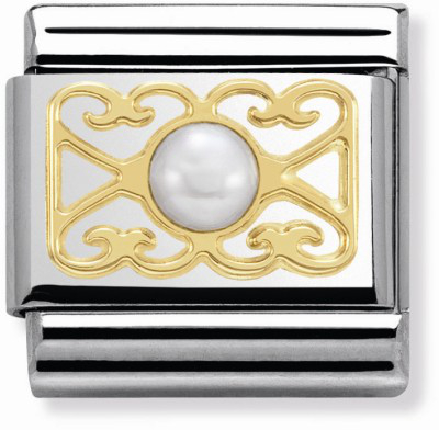 Nomination 030513-02, Elegance. Pala kuuluu tyylikkääseen Nomination Elegance sarjaan ja siihen on istutettu valkoinen makeanveden helmi. Nomination palat ovat valmistettu laadukkaasta ruostumattomasta teräksestä ja 18k kullasta. Nomination paloille myönnetään kahden vuoden takuu ja ne toimitetaan postikuluitta!