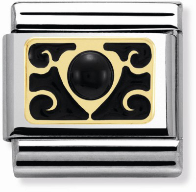 Nomination 030513-04, Elegance. Pala kuuluu tyylikkääseen Nomination Elegance sarjaan ja palaan on istutettu musta agaatti korukivi. Nomination palat ovat valmistettu laadukkaasta ruostumattomasta teräksestä ja 18k kullasta. Agaatin ympärillä olevat mustat kohdat ovat emaloitu mustalla emaalilla.Nomination paloille myönnetään kahden vuoden takuu ja ne toimitetaan postikuluitta!