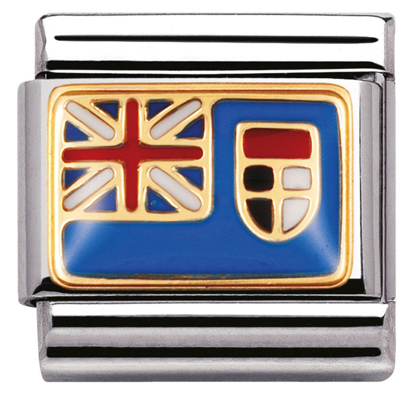 Nomination Fijin lippu 030238-03. Lippupalat ovat esimerkiksi hauskoja muistoja maista, joissa olet vieraillut tai maista joita rakastat. Nomination palat ovat valmistettu laadukkaasta ruostumattomasta teräksestä ja 18k kullasta. Palojen värikäät kohdat ovat emalia. Nomination paloille myönnetään kahden vuoden takuu ja ne toimitetaan valmistajan omassa rasiassa.