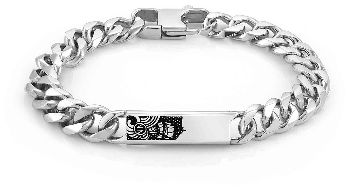 Nomination Instinct Marina Sailing Ship and Waves rannekoru 027910 030 on valmistettu hopeanvärisestä ruostumattomasta teräksestä. Oksidoitu hopea antaa laatalle tyylikkään vintage-henkisyyden. Laatan koko on 3,7 x 0,7 cm ja koko korun pituus on 20 cm. Italialaiset Nomination-korut toimitetaan valmistajan alkuperäisessä pakkauksessa.