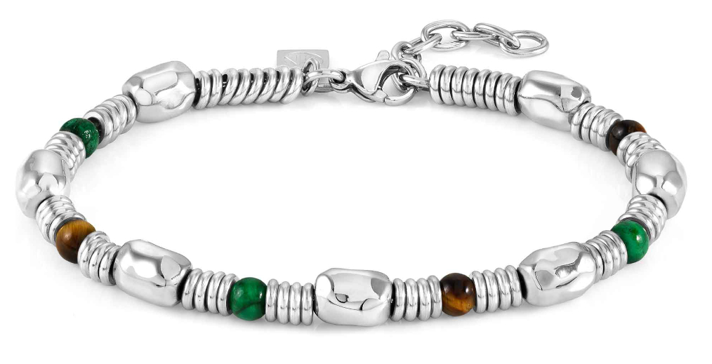 Nomination Instinct on uusi keväällä 2022 lanseerattu korumallisto miehille. Tämä näyttävä mallisto tarjoaa laajan valikoiman ruostumattomasta 316L -kirurginteräksestä valmistettuja miesten rannekoruja, joita koristaa useat erilaiset kivet. Hopeanväriset teräskorut on helppo yhdistää olemassaoleviin asusteisiin, ja luoda juuri itselle sopivan kokonaisuuden. Tämä Nomination Instinct rannekoru Mix 027923/062 on koristeltu agaateilla, malakiiteillä ja tiikerinsilmähelmillä, ja rannekorun pituus on säädettävissä 18,5-20,5 cm välille. Italialaiset Nomination-korut ovat ajaton valinta asusteeksi ja ne toimitetaan alkuperäisessä rasiassaan.
