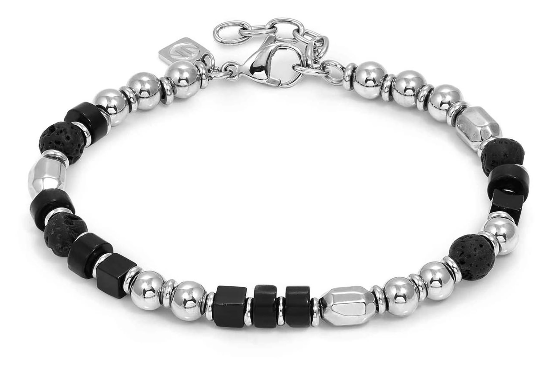 Nomination Instinctstyle 027932/095 unisex rannekoru on valmistettu ruostumattomasta teräksestä, jota koristaa mustat laavakivet. Sopiva rannekoru niin juhlaan kuin jokapäiväiseen käyttöön! Rannekorun pituus 22 cm, säätöväli 19 cm ja leveys 0,6 cm. Rannekorussa on papukaijalukko. Italialaiset Nomination-korut toimitetaan valmistajan kauniissa rasiassa.
