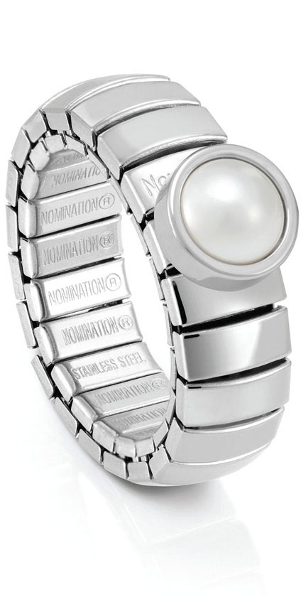 Nomination Lotus sormus 043101/013. Sormus on valmistettu ruostumattomasta teräksestä ja on yhden koon sormus, joka venyy tarvittavaan mittaan. Korussa vaalea helmi. Toimitetaan valmistajan alkuperäisessä rasiassa postikuluitta!