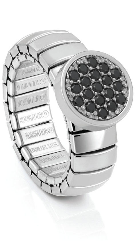 Nomination Lotus sormus 043103/011. Sormus on valmistettu ruostumattomasta teräksestä ja on yhden koon sormus, joka venyy tarvittavaan mittaan. Korussa 19 mustaa zirkonia. Toimitetaan valmistajan alkuperäisessä rasiassa postikuluitta!
