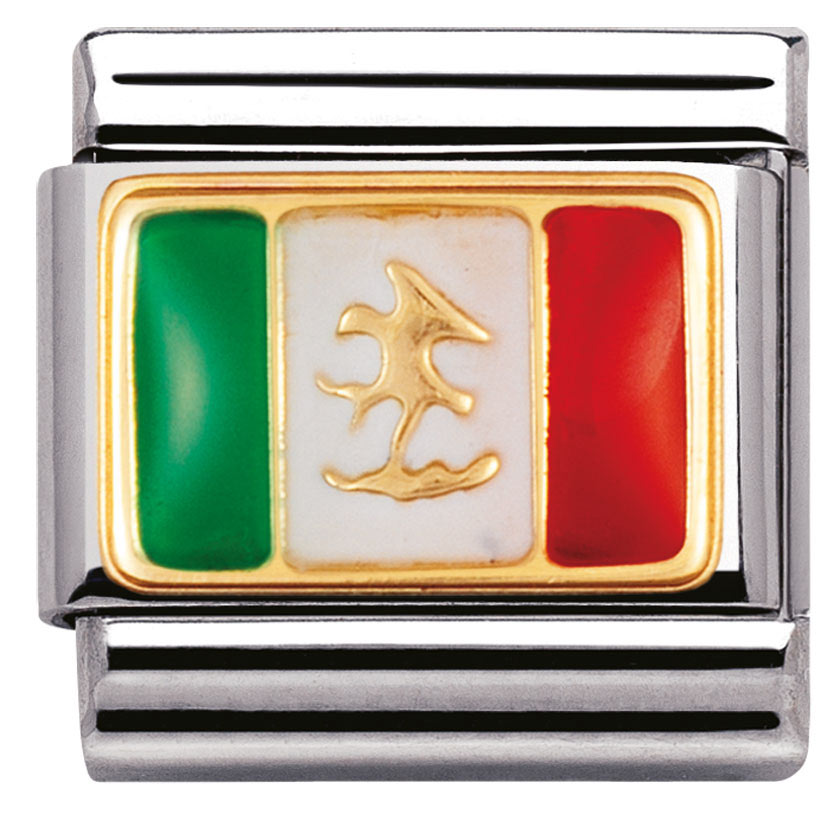 Nomination Meksikon lippu 030235-08. Lippupalat ovat esimerkiksi hauskoja muistoja maista, joissa olet vieraillut tai maista joita rakastat. Nomination palat ovat valmistettu laadukkaasta ruostumattomasta teräksestä ja 18k kullasta. Palojen värikäät kohdat ovat emalia. Nomination paloille myönnetään kahden vuoden takuu ja ne toimitetaan valmistajan alkuperäisessä pakkauksessa.