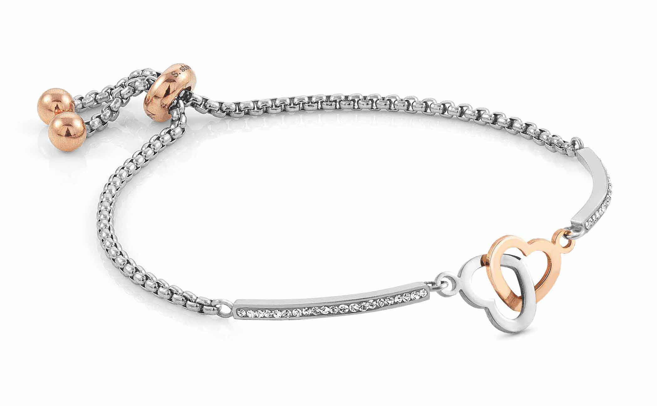 Teräksinen Nomination Milleluci rose gold Double hearts 028004-051 on kaunis sydänrannekoru ja ihana lahja itselle tai rakkaalle. Rannekoru on koristeltu kirkkailla kristalleilla ja kauniilla yhteenkietoutuneilla sydänriipuksilla (koko 1,6 x 1 cm). Ketju on säädettävissä 14-19 cm pituuteen. Italialaiset Nomination-korut toimitetaan valmistajan alkuperäisessä pakkauksessa.