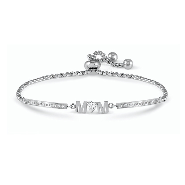 Nomination Milleluci Mom (028025/002) on herkkä ja tyylikäs teräsrannekoru, joka on suunniteltu kauniiksi kunnianosoitukseksi äidille. Korkealaatuisesta ruostumattomasta teräksestä valmistetussa korussa on siro ”MOM” -tekstielementti (koko 1,6 x 0,49 cm), jonka keskellä kimmeltää sydämenmuotoinen kirkas zirkonia. Tekstiä ympäröivät tyylikkäät, kimaltelevilla kuutiollisilla zirkonioilla koristellut laatat, jotka tuovat ranteeseen hienostunutta säihkettä. Säädettävän liukulukon ansiosta korun pituus on helposti muokattavissa 14 senttimetristä 19 senttimetriin, mikä takaa täydellisen istuvuuden ja tekee siitä erinomaisen lahjaidean äidille. Tämä Nomination-koru yhdistää italialaisen käsityön ja koskettavan viestin ajattomaksi asusteeksi.
