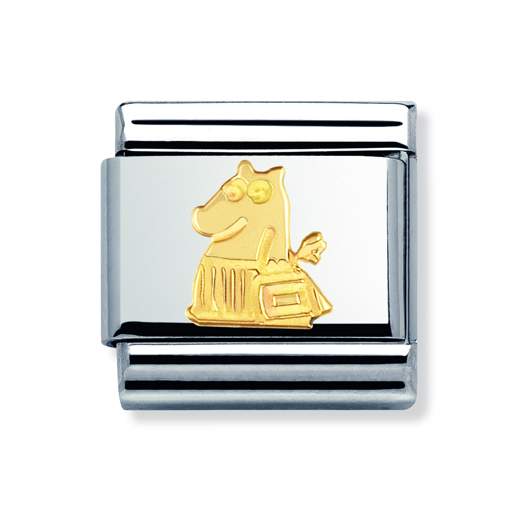 Nomination muumimamma 030147-06. Nomination palat ovat valmistettu laadukkaasta ruostumattomasta teräksestä ja 18k kullasta. Nomination paloille myönnetään kahden vuoden takuu ja ne toimitetaan valmistajan omassa rasiassa.