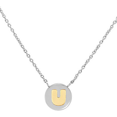 Nomination MyBonBons Collection tuotesarjan U -kirjainriipus. Riipus on valmistettu ruostumattomasta teräksestä, ja kullanvärinen osa on aitoa 18 karaatin kultaa. Riipuksen pituus on 44cm, mutta se on säädettävissä 40cm pituiseksi. Riipusosan halkaisija on 9mm. Nomination MyBonBons tuotesarjalle myönnetään kahden vuoden takuu, ja ne toimitetaan valmistajan alkuperäisessä rasiassa.