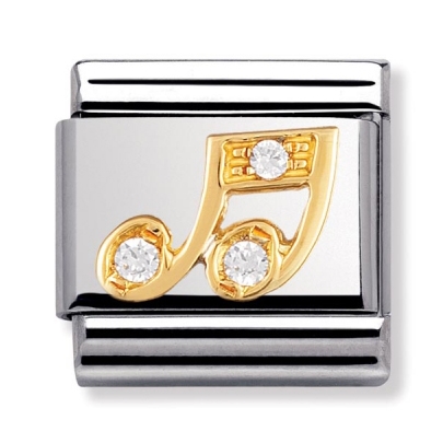 Nomination nuotti 030308-18. Nomination kivelliset palat ovat valmistettu laadukkaasta ruostumattomasta teräksestä ja 18k kullasta. Lisäksi niihin on istutettu synteettisiä Zirconia korukiviä. Nomination paloille myönnetään 2 vuoden takuu, ja ne toimitetaan valmistajan omassa rasiassa.