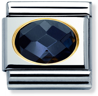 Nomination ovaali musta Zirconia 030601-011. Nomination palat ovat valmistettu laadukkaasta ruostumattomasta teräksestä ja 18k kullasta. Lisäksi palaan on istutettu synteettinen musta Zirconia korukivi. Nomination paloille myönnetään 2 vuoden takuu, ja ne toimitetaan valmistajan omassa rasiassa.