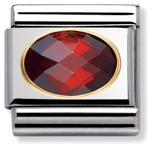 Nomination ovaali punainen Zirconia 030601-005. Nomination palat ovat valmistettu laadukkaasta ruostumattomasta teräksestä ja 18k kullasta. Lisäksi palaan on istutettu synteettinen punainen Zirconia korukivi. Nomination paloille myönnetään 2 vuoden takuu, ja ne toimitetaan valmistajan omassa rasiassa.