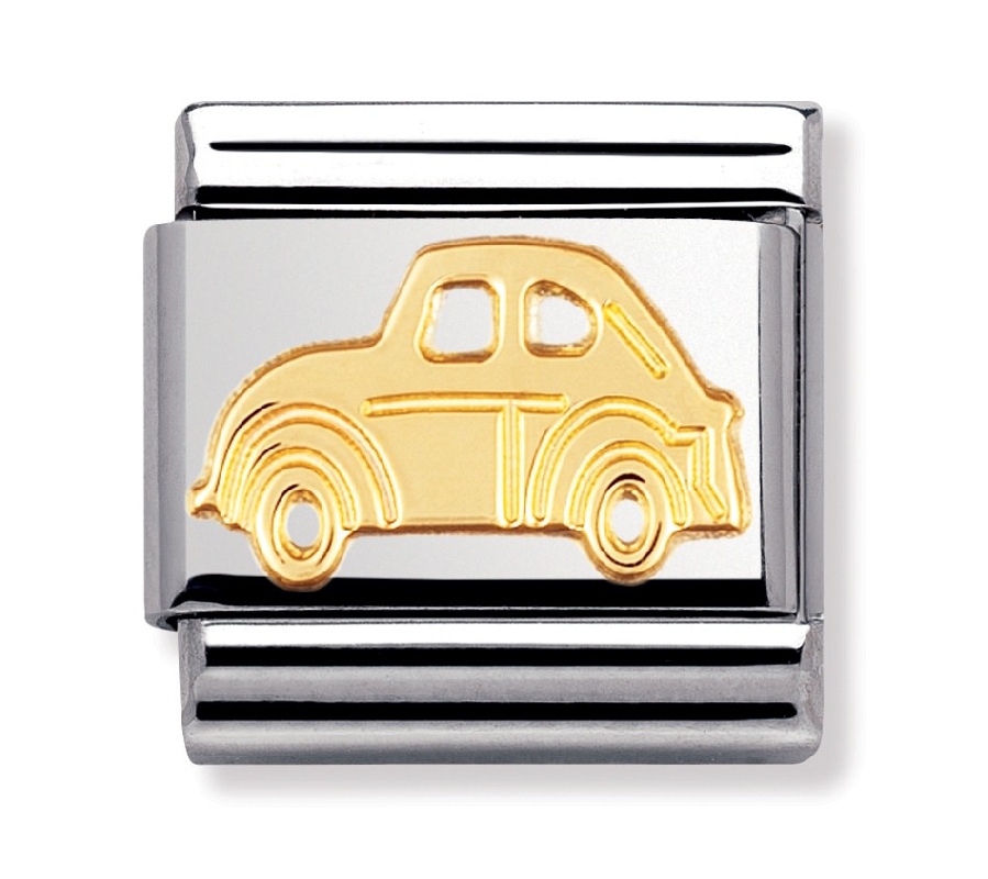 Nomination auto 030108-05. Nomination palat ovat valmistettu laadukkaasta ruostumattomasta teräksestä ja 18k kullasta. Nomination paloille myönnetään kahden vuoden takuu ja ne toimitetaan valmistajan omassa rasiassa!