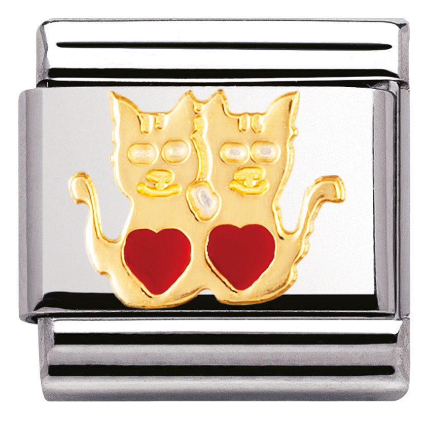 Nomination kissat 030248-01. Nomination palat ovat valmistettu laadukkaasta ruostumattomasta teräksestä ja 18k kullasta. Palojen värikäät kohdat ovat emalia. Nomination paloille myönnetään kahden vuoden takuu ja ne toimitetaan valmistajan omassa rasiassa.
