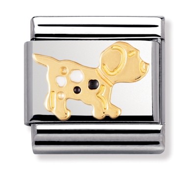 Nomination koira 030212-36. Nomination palat ovat valmistettu laadukkaasta ruostumattomasta teräksestä ja 18k kullasta. Palojen värikäät kohdat ovat emalia. Nomination paloille myönnetään kahden vuoden takuu ja ne toimitetaan valmistajan omassa rasiassa.