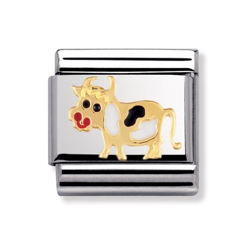Nomination lehmä 030212-04. Nomination palat ovat valmistettu laadukkaasta ruostumattomasta teräksestä ja 18k kullasta. Palojen värikäät kohdat ovat emalia. Nomination paloille myönnetään kahden vuoden takuu ja ne toimitetaan valmistajan omassa rasiassa.