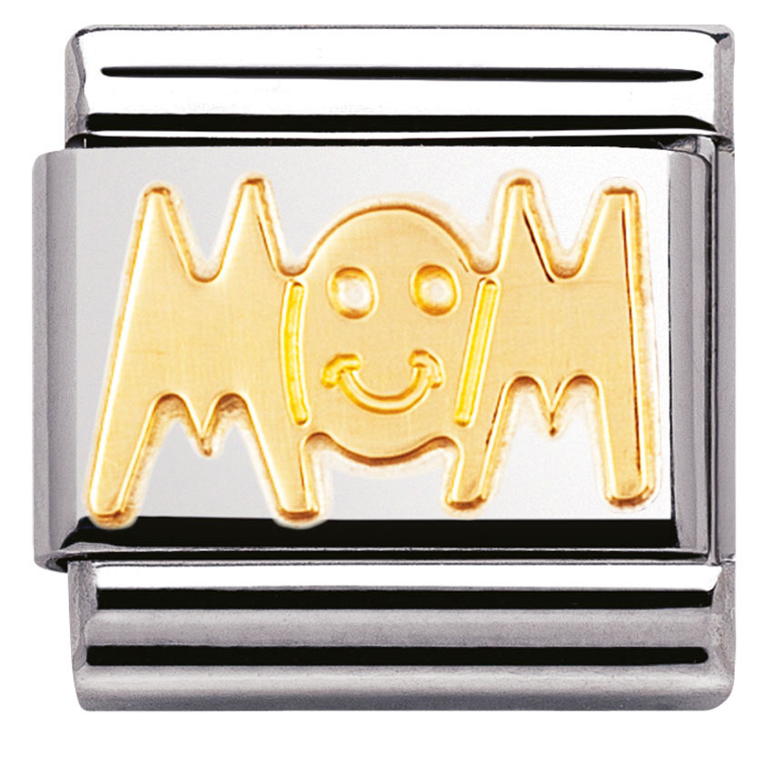 Nomination MOM 030107-01. Nomination palat ovat valmistettu laadukkaasta ruostumattomasta teräksestä ja 18k kullasta. Nomination paloille myönnetään kahden vuoden takuu ja ne toimitetaan valmistajan omassa rasiassa.