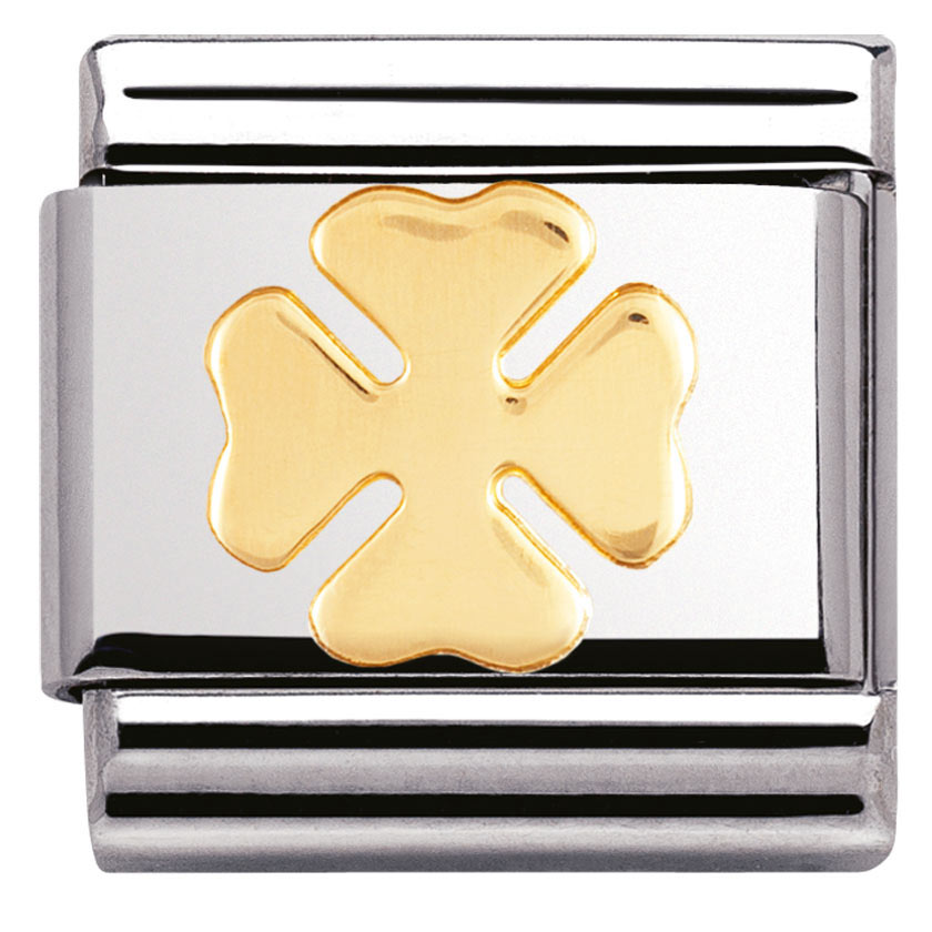 Nomination neliapila 030115-06. Nomination palat ovat valmistettu laadukkaasta ruostumattomasta teräksestä ja 18k kullasta. Nomination paloille myönnetään kahden vuoden takuu ja ne toimitetaan valmistajan omassa rasiassa.