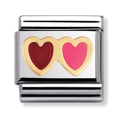 Nomination sydämet 030207-06. Nomination palat ovat valmistettu laadukkaasta ruostumattomasta teräksestä ja 18k kullasta. Palojen värit ovat emalia. Nomination paloille myönnetään kahden vuoden takuu ja ne toimitetaan valmistajan omassa rasiassa.