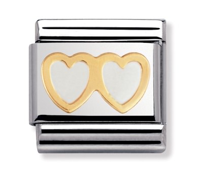 Nomination sydämet 030207-08. Nomination palat ovat valmistettu laadukkaasta ruostumattomasta teräksestä ja 18k kullasta. Palojen värit ovat emalia. Nomination paloille myönnetään kahden vuoden takuu ja ne toimitetaan valmistajan omassa rasiassa.