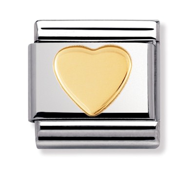 Nomination sydän 030116-02. Nomination palat ovat valmistettu laadukkaasta ruostumattomasta teräksestä ja 18k kullasta. Nomination paloille myönnetään kahden vuoden takuu ja ne toimitetaan valmistajan omassa rasiassa.