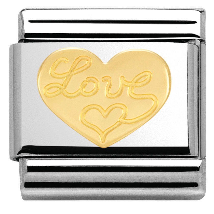 Nomination sydän 030116/11. Nomination palat ovat valmistettu laadukkaasta ruostumattomasta teräksestä ja 18k kullasta. Nomination paloille myönnetään kahden vuoden takuu ja ne toimitetaan valmistajan omassa rasiassa.