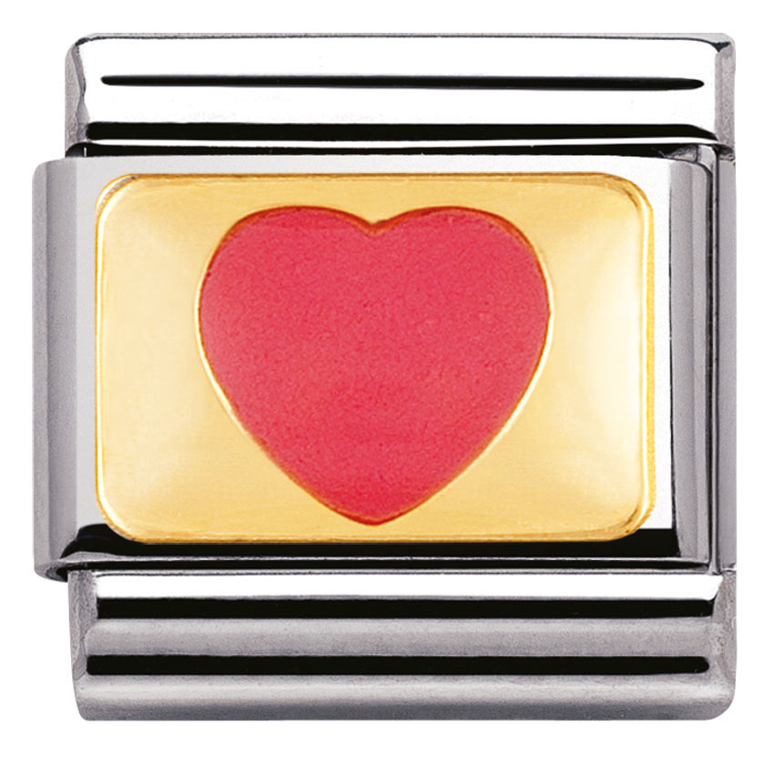 Nomination sydän 030207-25. Nomination palat ovat valmistettu laadukkaasta ruostumattomasta teräksestä ja 18k kullasta. Palojen värit ovat emalia. Nomination paloille myönnetään kahden vuoden takuu ja ne toimitetaan valmistajan omassa rasiassa.