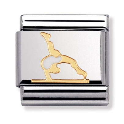 Nomination telinevoimistelija 030203-37. Nomination palat ovat valmistettu laadukkaasta ruostumattomasta teräksestä ja 18k kullasta. Palojen värit ovat emalia. Nomination paloille myönnetään kahden vuoden takuu ja ne toimitetaan valmistajan omassa rasiassa.
