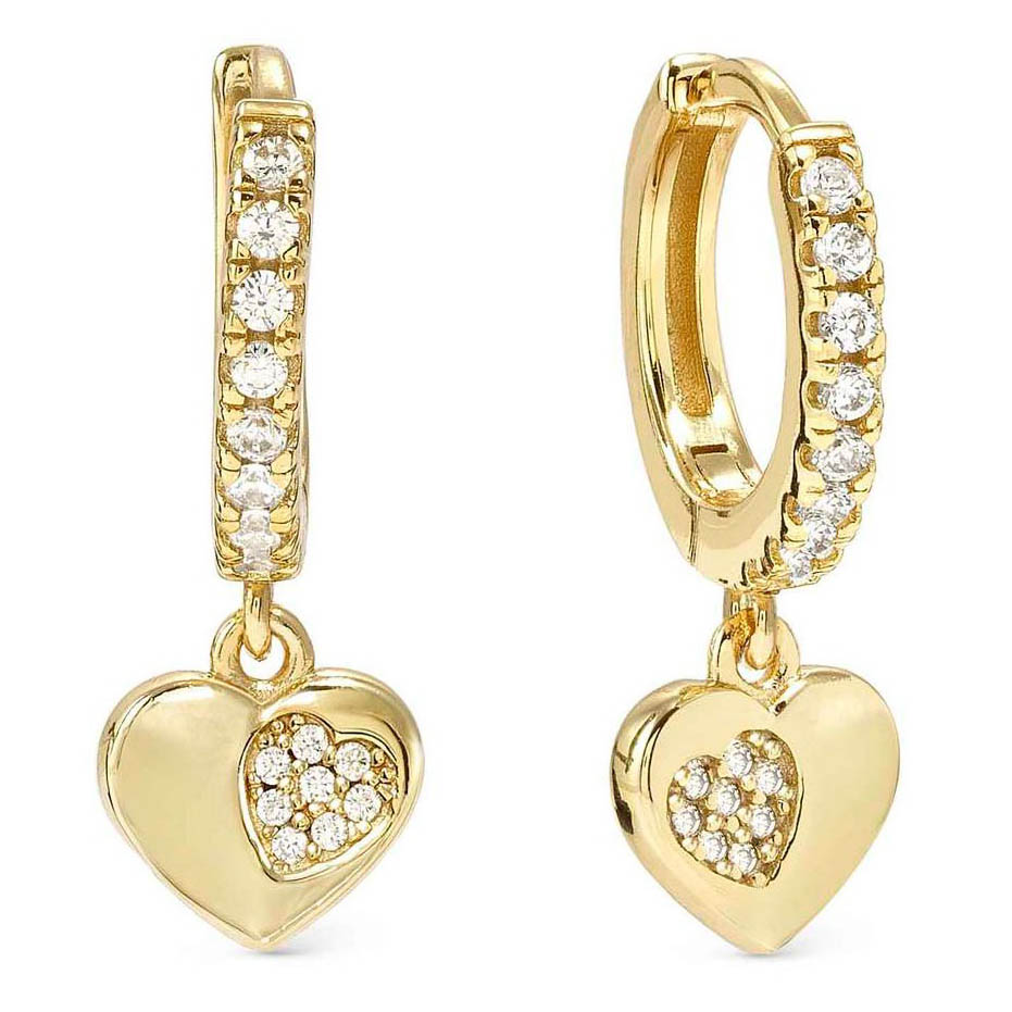 Nomination Petit Sparkle 242305/006 elegantit korvarenkaat on koristeltu kirkkailla zirkonioilla ja sydänkorun toinen puoli muodostaa pienen sydämen, joka on myöskin koristeltu zirkonioilla. Korvakorujen materiaalina toimii kullattu hopea. Korvakorujen halkaisija 1,2 cm. Sydämen koko 0,7 x 0,6 cm. Italialaiset Nomination-korut toimitetaan valmistajan kauniissa rasiassa.
