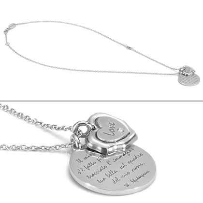Nomination Poesia kaulakoru 025122/014. Kaulakoru on valmistettu ruostumattomasta teräksestä ja ketjun pituus on 44cm/46cm (säädettävissä). Korussa Swarovskin zirkonia. Riipuksen suurin halkaisija 22mm. Toimitetaan valmistajan alkuperäisessä rasiassa postikuluitta!