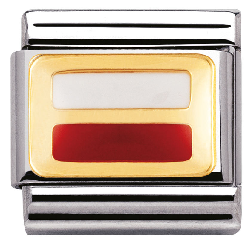 Nomination Puolan lippu 030234-16. Lippupalat ovat esimerkiksi hauskoja muistoja maista, joissa olet vieraillut tai maista joita rakastat. Nomination palat ovat valmistettu laadukkaasta ruostumattomasta teräksestä ja 18k kullasta. Palojen värikäät kohdat ovat emalia. Nomination paloille myönnetään kahden vuoden takuu ja ne toimitetaan valmistajan alkuperäisessä pakkauksessa.