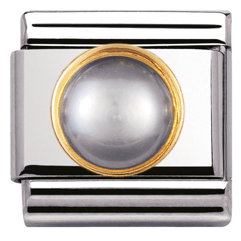 Nomination pyöreä harmaa helmi 030503-14. Nomination kivelliset palat ovat valmistettu laadukkaasta ruostumattomasta teräksestä ja 18k kullasta. Palassa on makeanveden harmaa helmi. Nomination paloille myönnetään 2 vuoden takuu, ja ne toimitetaan valmistajan omassa rasiassa.
