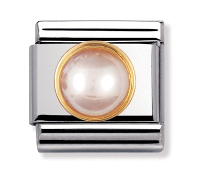Nomination pyöreä vaaleanpunainen helmi 030503-15. Nomination kivelliset palat ovat valmistettu laadukkaasta ruostumattomasta teräksestä ja 18k kullasta. Palassa on makeanveden vaaleanpunainen helmi. Nomination paloille myönnetään 2 vuoden takuu, ja ne toimitetaan valmistajan omassa rasiassa.