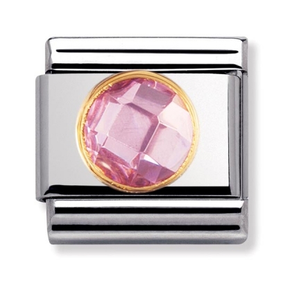 Nomination pyöreä vaaleanpunainen Zirconia 030605-003. Nomination palat ovat valmistettu laadukkaasta ruostumattomasta teräksestä ja 18k kullasta. Lisäksi palaan on istutettu synteettinen vaaleanpunainen Zirconia korukivi. Nomination paloille myönnetään 2 vuoden takuu, ja ne toimitetaan postikuluitta!