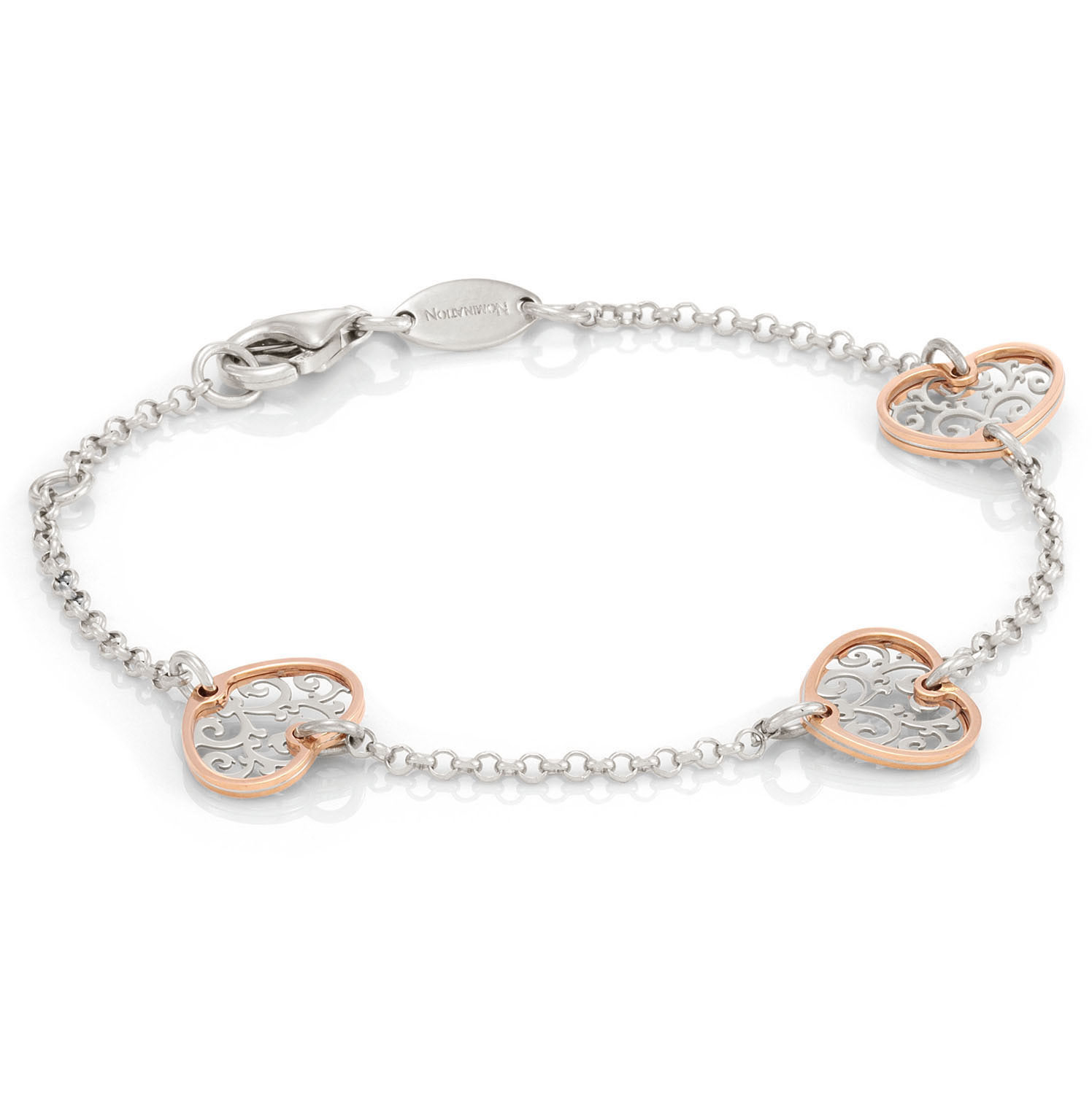 Nomination Romantica rannekoru 141514/004. Rannekorun pituus 17,5cm/19cm (säädettävät). Materiaali Sterling Silver 925- hopeaa. Toimitetaan valmistajan alkuperäisessä rasiassa postikuluitta!