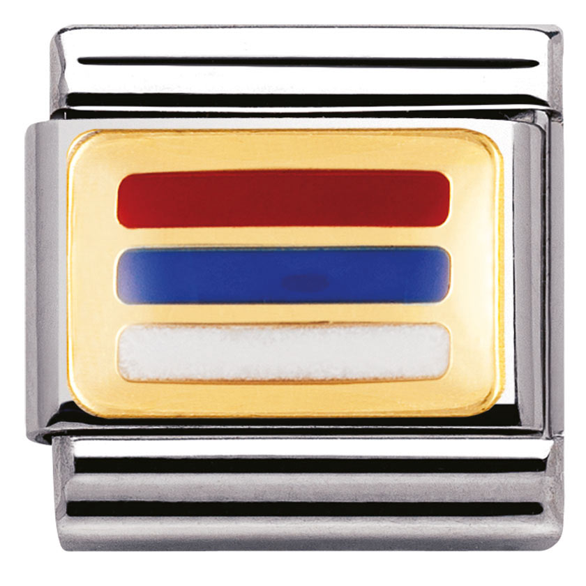 Nomination Serbian lippu 030234-44. Lippupalat ovat esimerkiksi hauskoja muistoja maista, joissa olet vieraillut tai maista joita rakastat. Nomination palat ovat valmistettu laadukkaasta ruostumattomasta teräksestä ja 18k kullasta. Palojen värikäät kohdat ovat emalia. Nomination paloille myönnetään kahden vuoden takuu ja ne toimitetaan valmistajan alkuperäisessä pakkauksessa.