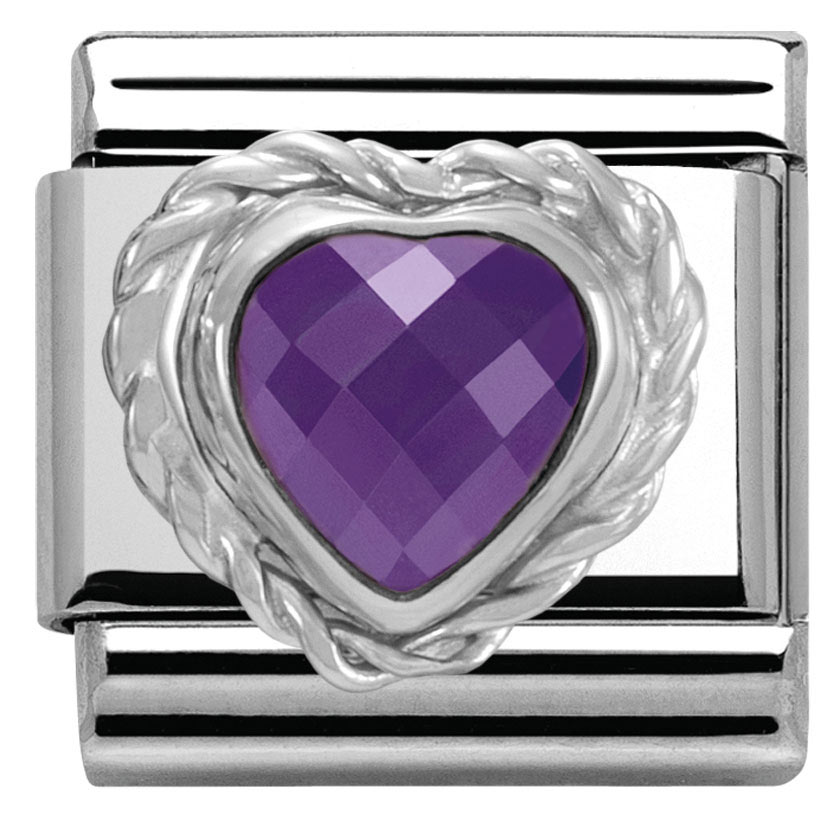 Nomination SilverShine 330603-001, johon on istutettu lila synteettinen Zirconia korukivi. Nomination SilverShine palat ovat valmistettu laadukkaasta ruostumattomasta teräksestä ja 925-Sterling hopeasta. Nomination paloille myönnetään 2 vuoden takuu, ja ne toimitetaan valmistajan alkuperäisessä pakkauksessa.
