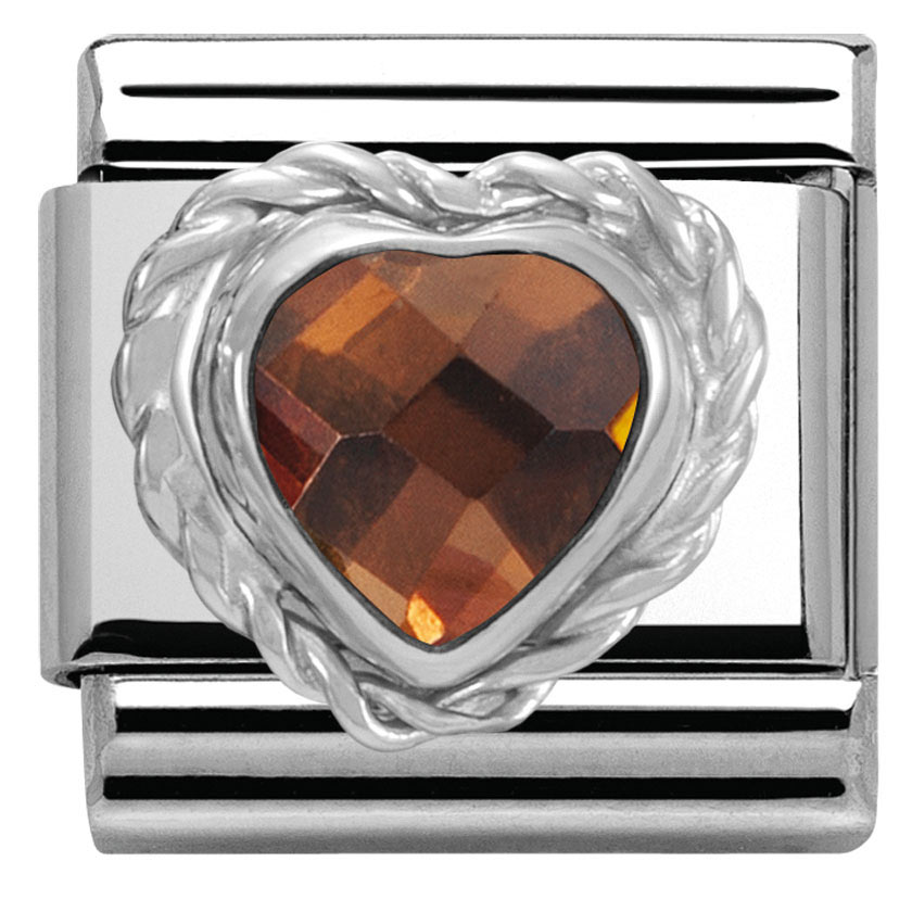 Nomination SilverShine 330603-012, johon on istutettu ruskea synteettinen Zirconia korukivi. Nomination SilverShine palat ovat valmistettu laadukkaasta ruostumattomasta teräksestä ja 925-Sterling hopeasta. Nomination paloille myönnetään 2 vuoden takuu, ja ne toimitetaan valmistajan alkuperäisessä pakkauksessa.