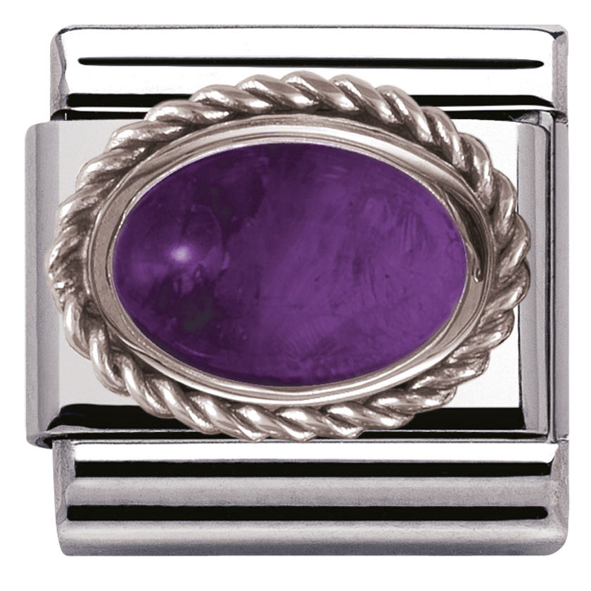 Nomination SilverShine ametisti 030510-02. Ametisti on myös helmikuun syntymäkivi, eli pala on hyvä lahja helmikuussa syntyneille. Nomination SilverShine palat ovat valmistettu laadukkaasta ruostumattomasta teräksestä ja 925-Sterling hopeasta. Nomination paloille myönnetään 2 vuoden takuu, ja ne toimitetaan postikuluitta!