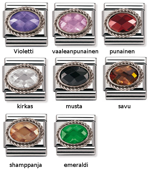 Nomination SilverShine ovaalit Zirconiait. Palaan on istutettu synteettinen Zirconia korukivi. Nomination SilverShine palat ovat valmistettu laadukkaasta ruostumattomasta teräksestä ja 925-Sterling hopeasta. Nomination paloille myönnetään 2 vuoden takuu, ja ne toimitetaan postikuluitta!