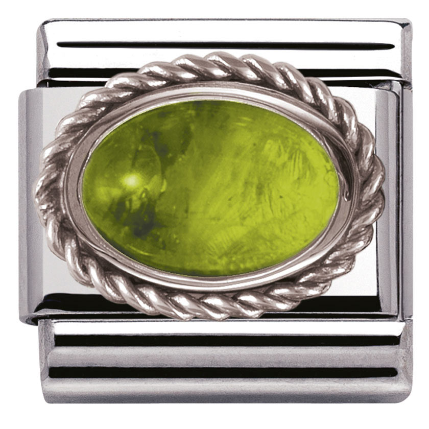 Nomination SilverShine Peridootti 030510-05. Peridootti on myös elokuun syntymäkivi, eli pala on hyvä lahja elokuussa syntyneille. Nomination SilverShine palat ovat valmistettu laadukkaasta ruostumattomasta teräksestä ja 925-Sterling hopeasta. Nomination paloille myönnetään 2 vuoden takuu, ja ne toimitetaan postikuluitta!