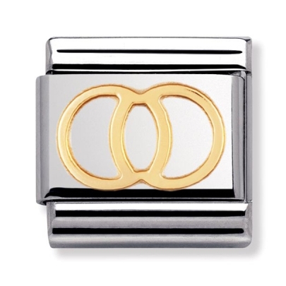 Nomination sormukset 030109-21. Nomination palat ovat valmistettu laadukkaasta ruostumattomasta teräksestä ja 18k kullasta. Nomination paloille myönnetään kahden vuoden takuu ja ne toimitetaan valmistajan omassa rasiassa.