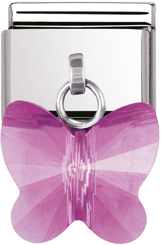 Nomination 030604-20 palassa on Swarovskin kristallista valmistettu fuchsian värinen perhonen. Nomination palat ovat valmistettu laadukkaasta ruostumattomasta teräksestä. Huom. Swarovskin elementeistä tehdyillä paloilla ei ole takuuta. Nomination Swarovski palat toimitetaan postikuluitta!