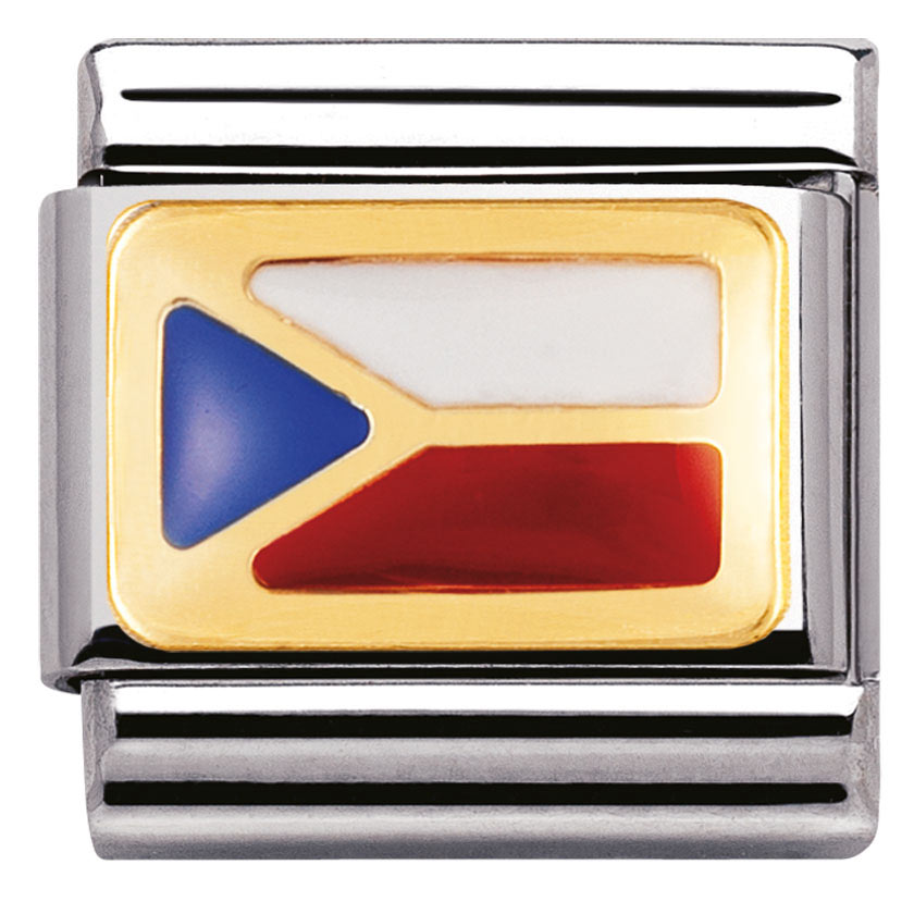 Nomination Tsekin lippu 030234-30. Lippupalat ovat esimerkiksi hauskoja muistoja maista, joissa olet vieraillut tai maista joita rakastat. Nomination palat ovat valmistettu laadukkaasta ruostumattomasta teräksestä ja 18k kullasta. Palojen värikäät kohdat ovat emalia. Nomination paloille myönnetään kahden vuoden takuu ja ne toimitetaan valmistajan alkuperäisessä pakkauksessa.