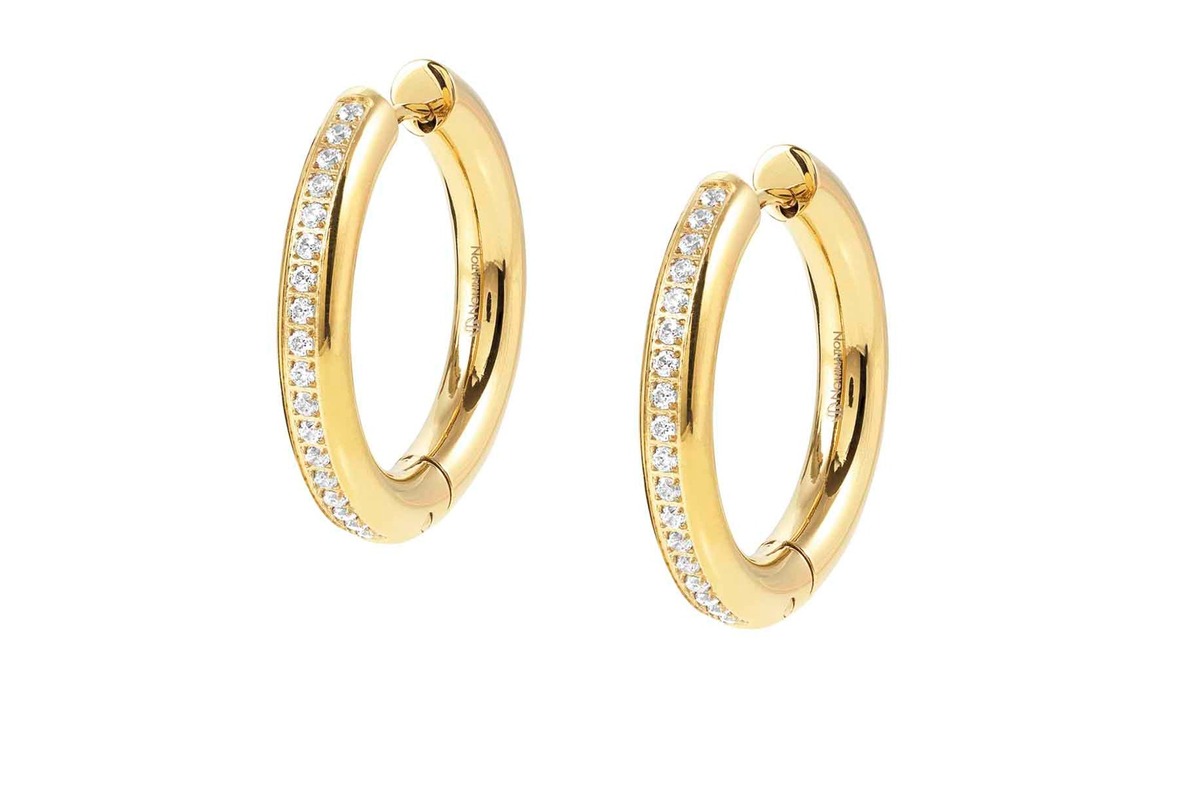 Kullanväriset korvarenkaat ovat klassikkoasuste arkeen ja juhlaan. Kullanvärisestä teräksestä valmistetut Nomination Unconditionally korvakorut 029103/012 ovat halkaisijaltaan 25 mm, ja pintaa koristaa synteettiset zirkoniat. Italialaiset Nomination-korut toimitetaan valmistajan alkuperäisessä pakkauksessa.