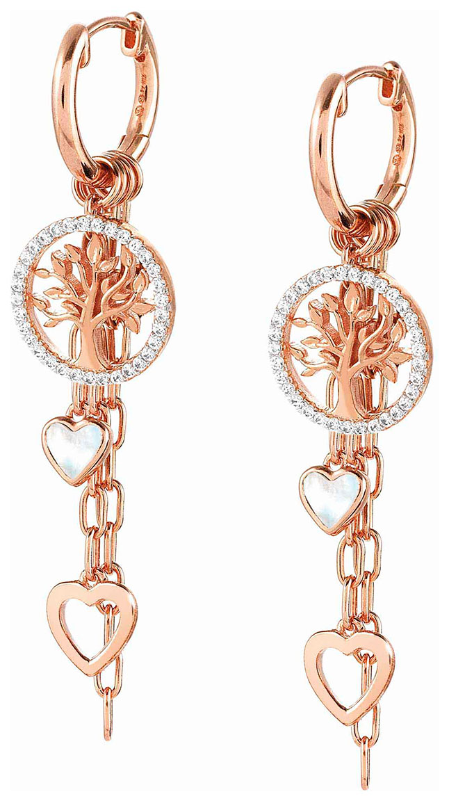 Nomination Vita with Tree of Life korvakorut Rose Gold korvakorut 148404 002 on valmistettu sterling-hopeasta ja päällystetty 22K ruusukullalla. Tree of Life -riipus on koristeltu zirkonioin ja kahdessa sydämessä on käytetty helmiäistä. Korvakorujen korkeus on 2,3 cm. Riipuksien koot 1 x 1 cm, 0,5 x 0,5 cm ja 0,7 x 0,7 cm. Italialaiset Nomination-korut toimitetaan valmistajan alkuperäisessä pakkauksessa.