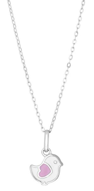 Nordahl Jewellery lasten lintu kaulakoru 225 112 sisältää kauniin linturiipuksen, jota koristaa valkoinen emalointi ja pieni vaaleanpunainen sydän. Riipuksen koko 9x8,5 mm, ja kaulakoruun on saatavana myös yhteensopivat korvakorut. Nordahl Jewellery -lastenkorut on valmistettu rodinoidusta sterling-hopeasta, ja ne toimitetaan kotiin valmistajan alkuperäisessä rasiassa.