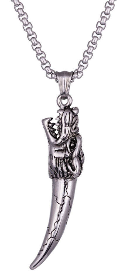 Northern Viking Jewelry Fenrir Tooth NVJRS117 on tyylikäs miesten viikinkiaiheinen kaulakoru. 55 cm pitkässä ja 3 mm paksussa kaulaketjussa roikkuu 6,5 x 1,4 cm kokoinen sudenhampaan muotoinen riipus. Fenrir Tooth NVJRS117 -riipus on valmistettu 316L kirurginteräksestä, ja se painaa 26 grammaa. Riipus ja ketju toimitetaan uniikissa Northern Viking Jewelry® -juuttipussissa.