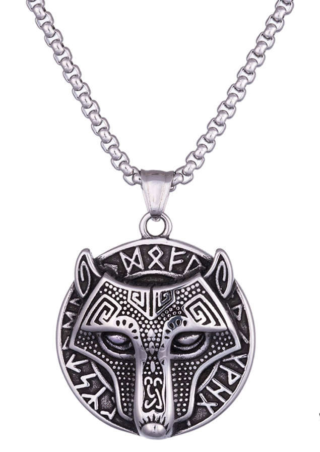Northern Viking Jewelry Riimu Guardian Wolf NVJRS124 on tyylikäs miesten viikinkiaiheinen kaulakoru. 55 cm pitkässä ja 3 mm paksussa kaulaketjussa roikkuu 3,6 x 3,6 cm kokoinen susiriipus. Riimu Guardian Wolf NVJRS124 -riipus on valmistettu 316L kirurginteräksestä, ja se painaa 30 grammaa. Riipus ja ketju toimitetaan uniikissa Northern Viking Jewelry® -juuttipussissa.