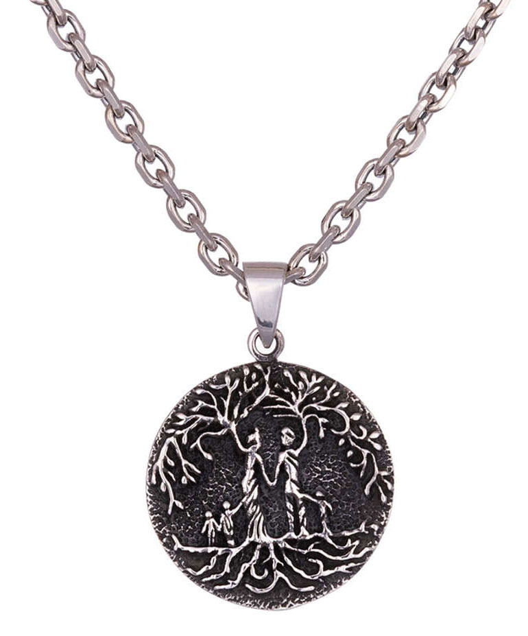 Northern Viking Jewelry Tree Of Life Family NVJ-H-RS069 on tyylikäs viikinkiaiheinen riipus, joka on valmistettu sterling-hopeasta. Hopeariipus on halkaisijaltaan 2,6 cm. Vain 8 grammaa painava Tree Of Life Family NVJ-H-RS069 -riipus toimitetaan uniikissa Northern Viking Jewelry® -juuttipussissa. Huom! Pakkaus ei sisällä ketjua!